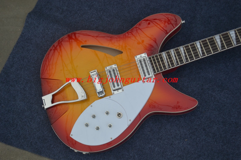 > Semi-hollow LP rickenbank electric guitar in orange 3022