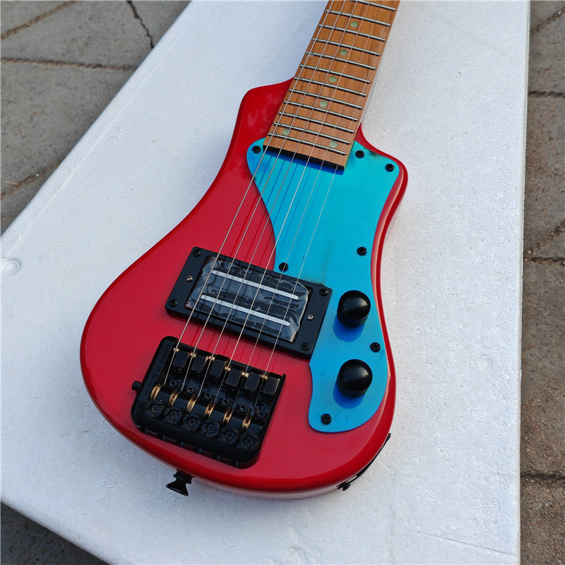 Red MINI Headless electric guitar Roasted Maple Neck BJ-751